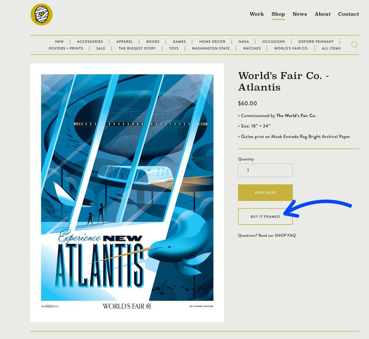 Provide a URL for any poster, art print or photo you are currently selling, and we'll create a custom framing option you can easily add to your own site or storefront. Compatible with Shopify, BigCartel, Squarespace and other platforms.